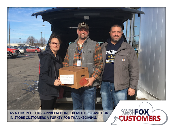 The vision of Fox Motors is working together moving people throughout life. Our primary focus as a Fox Family is finding ways to give back to our employees, community and customers as a team.